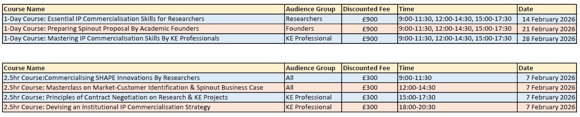 Note-2: IP2Impact Ltd can also consider the possibility of delivering the advertised LIVE or Self-Study courses at a mutually convenient time/date for an ‘exclusive’ group of attendees either ‘ONLINE’ or ‘in-person at a location’ (provided the institution/buyer covers the additional cost of travel expenses & course delivery preparations). Further discussion on this aspect can be made with IP2Impact Ltd by submitting your request proposal via emailing at ‘info@ipcommercialisation.co.uk’.